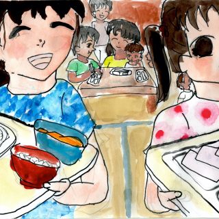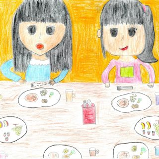 ごちそうさま!賞を贈りたいと思える力作ばかりで選考に大変苦労しました。力強さがある絵、かわいい絵、生き生きした絵、カラフルな絵など、どれも個性的で素晴らしく、こども食堂でのさまざまな楽しい思い出が非常によく伝わってきました。この思い出はお子様たちにとってかけがえのない経験だと思います。こども食堂が一日も早く再開できることを願っていますし、これからもその活動を応援してまいりたいと強く思いました。また、お子様たちの無限の可能性を改めて感じることができました。実際に展示されている絵画を見るのが楽しみです。