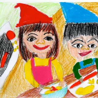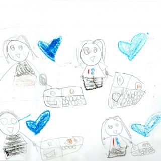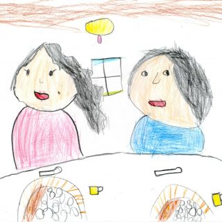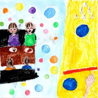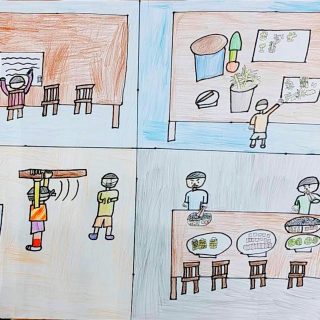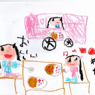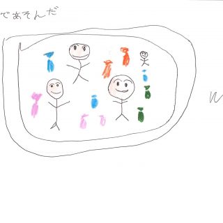 みんなの絵、ぜーんぶが素敵すぎます。輝いています。こども食堂が、みんなにとって楽しい場所だったり、おいしい場所だったり、嬉しい場所だったり、もしかしたら秘密の場所になっているかも?と楽しく想像して、ウキウキ、ワクワクしました。子どもたちの周りに素敵で優しい大人がたくさんいて下さるんだなーと思いました。ありがとうございます。