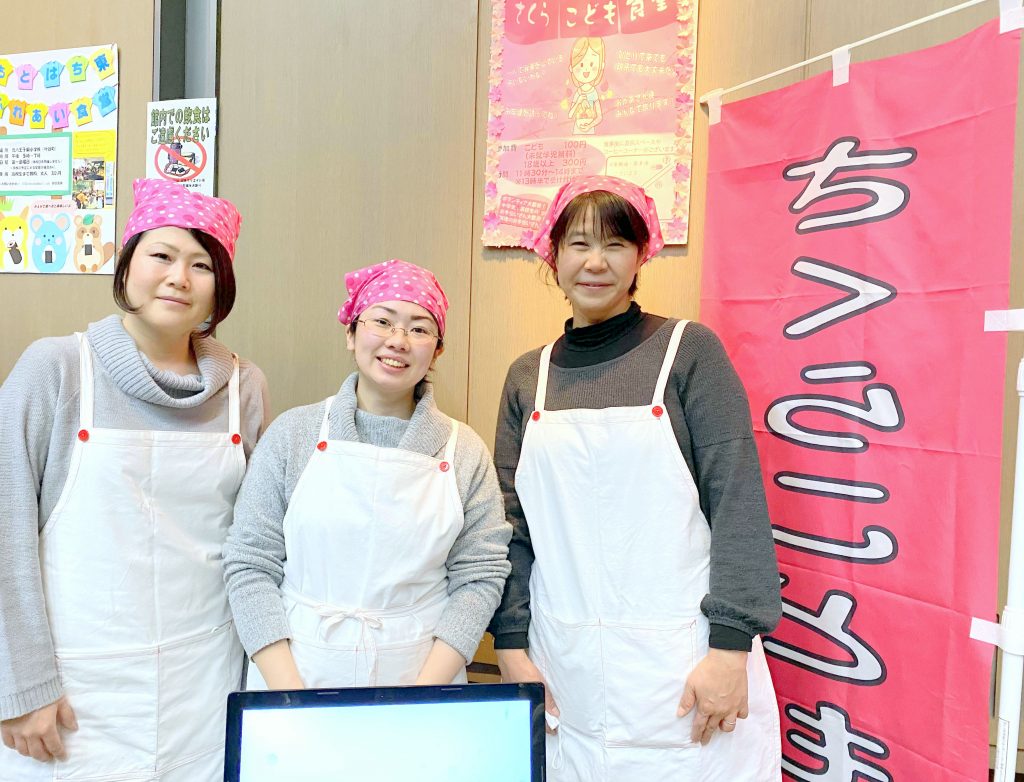 中でも鮮やかなピンク色ののぼり旗が会場内で目立っていた、「さくらこども食堂」の皆様。
