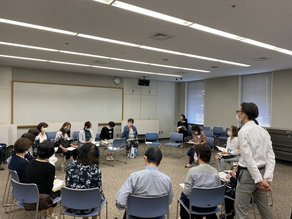 湯浅の登壇のあとは、2班に分かれ、車座になっての文字通りの座談会タイム。