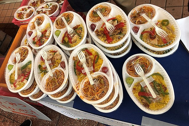 「特製オレンジ弁当」 のメニューは大宮B級グルメの「大宮ナポリタン」や、寄付された古米を美味しく食べられるように工夫されたパエリアなど、その名の通りオレンジ尽くしの内容。