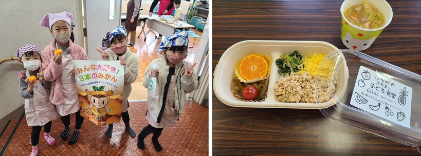 2018年より継続したご支援となり、今年も「毎日くだもの200g運動」の一環として、全国のこども食堂においしい「温州みかん」が届けられました。旬の食材ということもあり、毎年、この時期だけのご提供となり、何といっても、果物そのものを多くの子どもたちに提供できることは、非常に貴重なご支援です。多くの団体より、子どもたちの笑顔のご報告が届けられました。