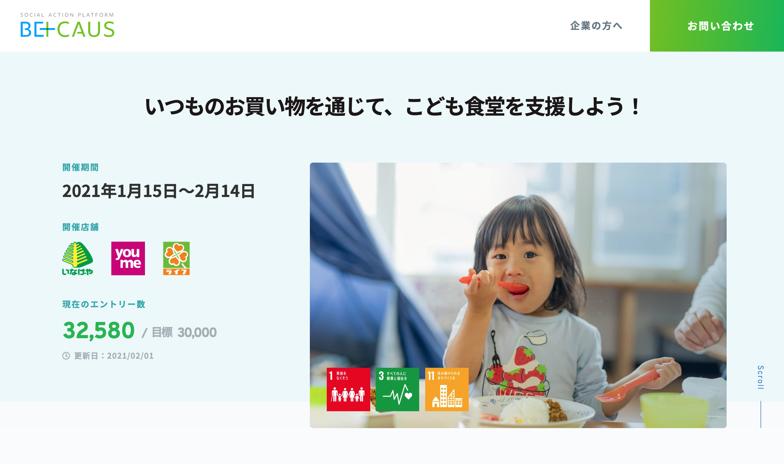 日本ユニシス株式会社、株式会社STYZ、株式会社イズミ、株式会社いなげや、株式会社ライフコーポレーションによる、小売・メーカーなどの企業と、NPO、生活者が連携し、日常の買い物を通して、社会課題解決に向けた取り組みを促進させるソーシャルアクションプラットフォーム「BE+CAUS (ビーコーズ)」の第2回目キャンペーンの寄付先にむすびえが選定されました。