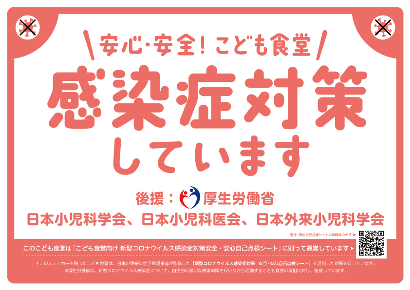 いずれも専門家の方たちのご協力を得て制作したものです。動画や事例集でどうすればいいかの具体的な処方箋を知ってもらい、自己点検シートでご自分たちのこども食堂の運営をたしかめていただき(全26項目)、すべてチェックできたらマークをご利用いただける、という建て付けです。マークには、厚労省、日本小児科学会等の後援をいただきました。