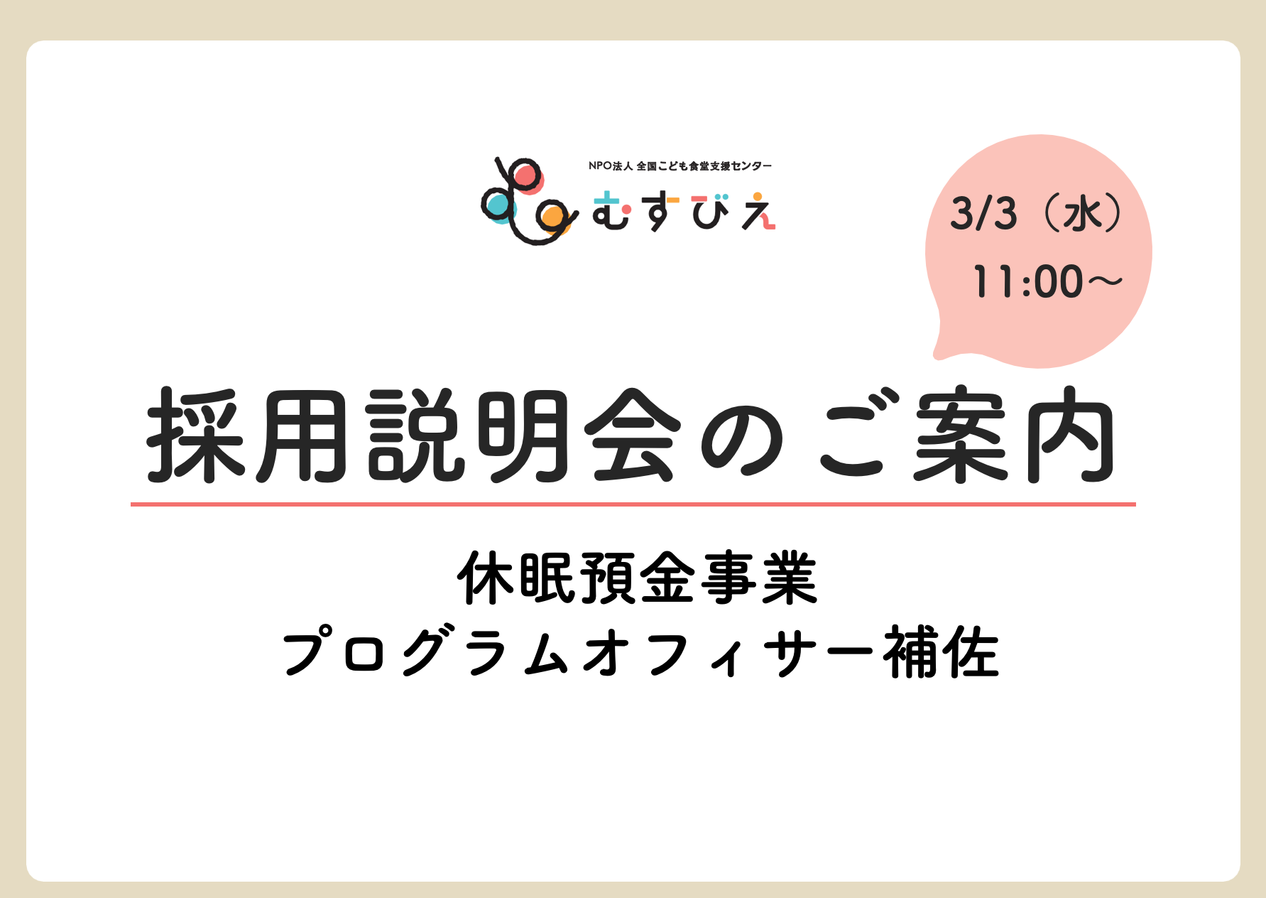 むすびえでは、休眠預金通常枠「居場所の包括連携によるモデル地域づくり(全国)」事業におけるプログラムオフィサーの補佐を募集します。