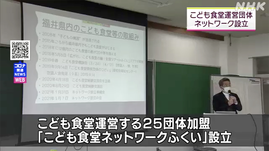 福井県で「こども食堂ネットワークふくい」が発足しました。むすびえからも3人がオンライン参加し、他県のネットワーク団体の方たちとともにお祝いをお伝えしました。