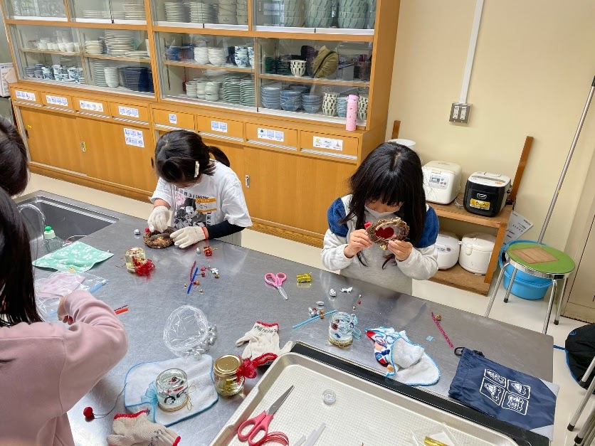 感染予防対策の中で行った工作は「クリスマスリース&お正月飾り」。クリスマスリースだけではもったいないので、お正月飾りにも変身できるように今回は準備しました。長野の山から送っていただいた藤の枝や野いばらをリースの土台にし、クリスマス用には杉やシダにヒイラギ、参加者のお子さんが作ってくれた折り紙の飾りなど。家に帰ってまたやってみたいという声もたくさんいただきました。(こども食堂 あやちゃんち)