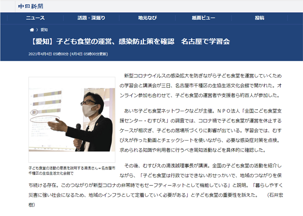 ◼️中日新聞の紙面とWEBにて報道していただきました。