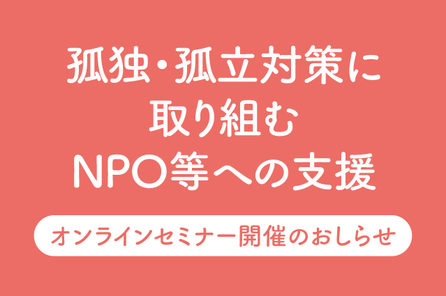政府広報資料「孤独・孤立対策に取り組むNPO等の皆様へ~緊急支援策のご案内」https://www.cas.go.jp/jp/seisaku/kodoku_koritsu_taisaku/pdf/kinkyu_sien.pdf