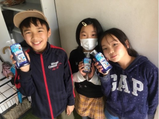 ●この度は薬用ハンドジェル「キレイキレイ」をたくさん寄付してくださり、ありがとうございました。