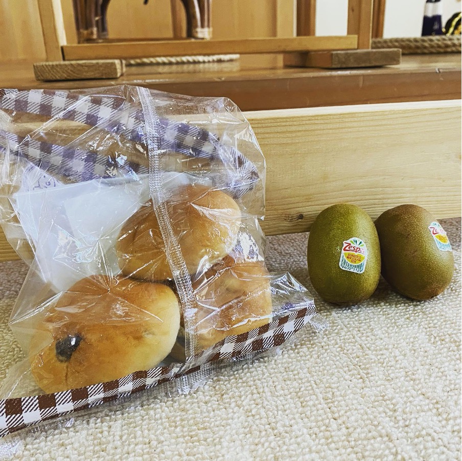 緊急事態宣言前日なので、軽食の提供を諦め、食料配布に切り替えました。 いただいたキウイとフランクフルトがメニューでしたが、残念でした。キウイは皆さんにお持ち帰りい ただきました。ありがとうございました。