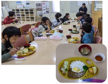 多くの子どもが「おかわり!!」って大きな声で言ってくれ、スタッフも大喜び!!一緒に食べた保護者の方も「お家ではおかわりしないのに、今日はたくさん食べて驚きました。」との声もいただき、またまたスタッフ大喜びでした。カレーは笑顔を運んできますね。
