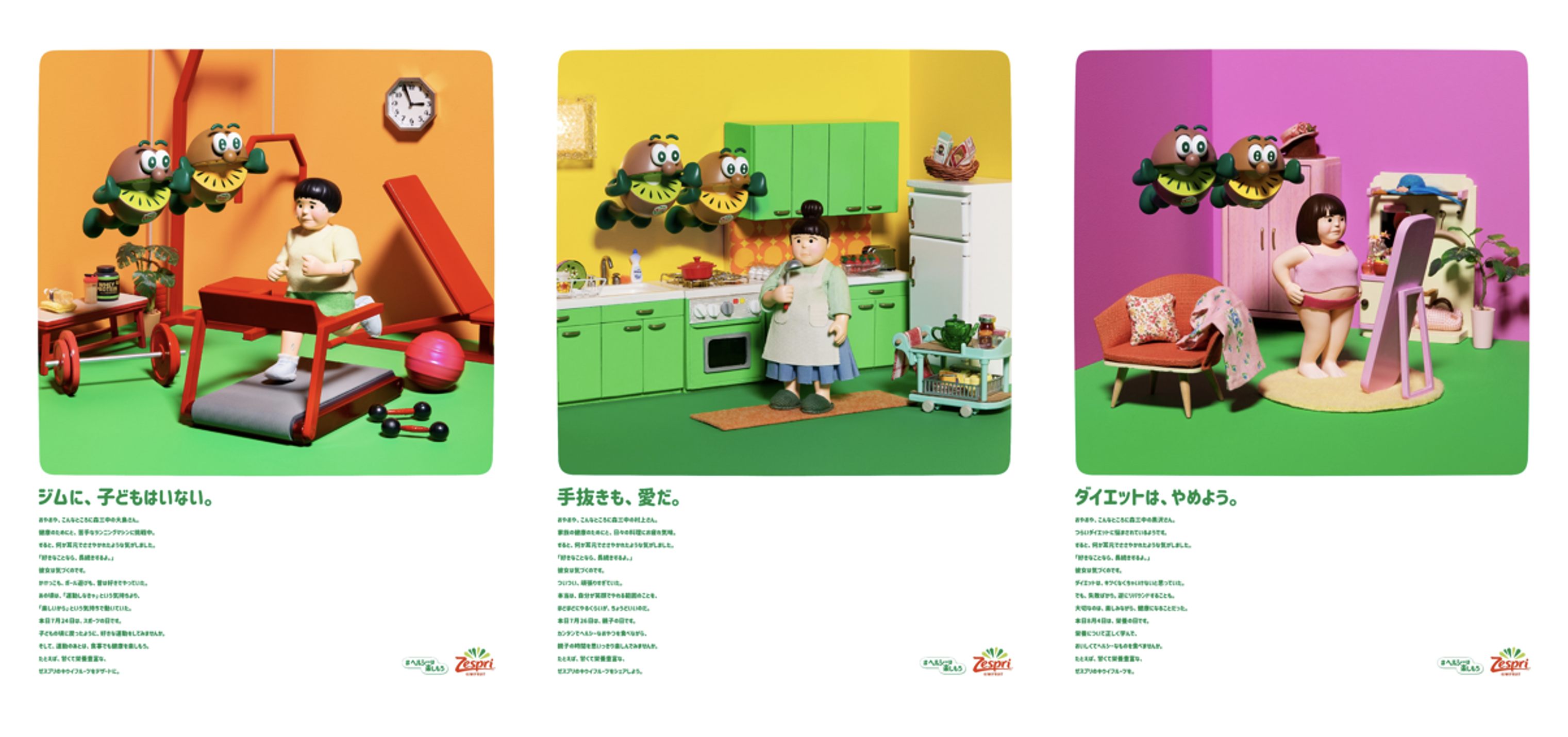 受賞作品は、2020年7月24日(スポーツの日)、7月26日(親子の日)、8月4日(栄養の日)に掲載された「ヘルシーは楽しもう」の新聞広告3回シリーズです。難しいというイメージがある「健康的な生活」を、誰もが楽しめるものに変えていくことをコンセプトに、森三中と一緒にキウイブラザーズが健康について考える広告を展開しました。