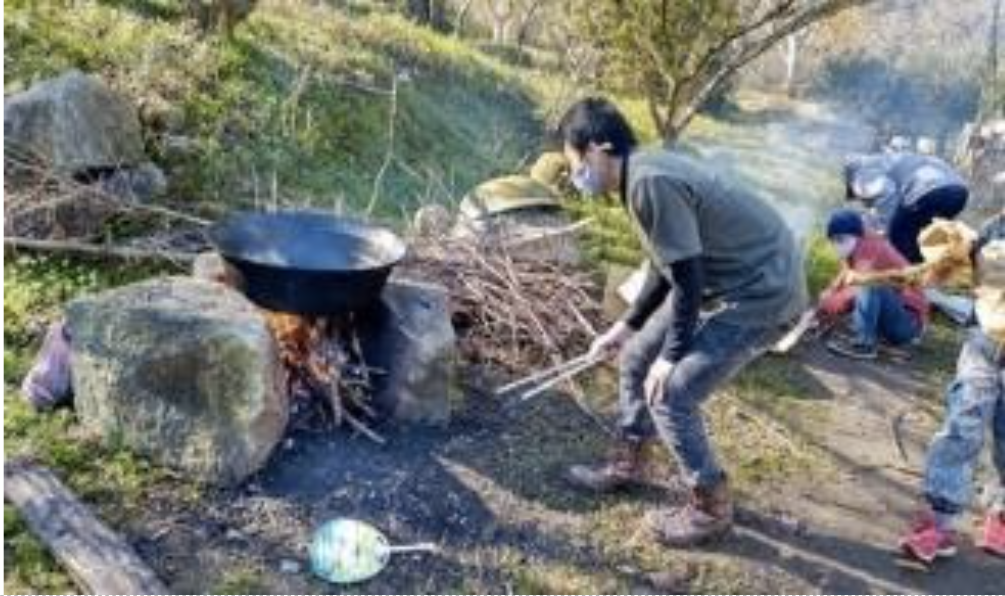 平安時代から続く個人の農園で薪を焚いての食事作り。(広島県・かぐやこども食堂)