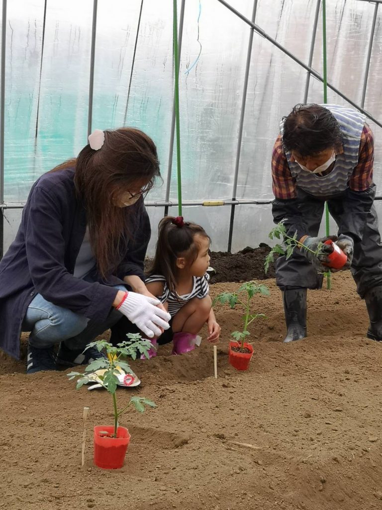 防災拠点でもある施設内のハウスで、地域の皆さんとの交流をかねた菜園活動。(熊本県・楡木子ども地域食堂なごみ)