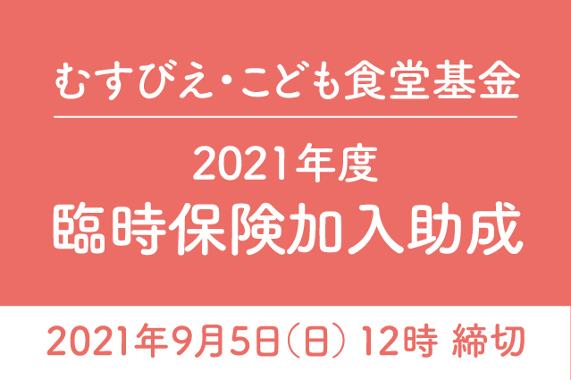 - ※こども食堂基金、他助成金等で、保険加入費が充当されている場合は、申請できません。重複の申請はできかねます。また2021年度こども食堂基金の採択団体は対象となりません。