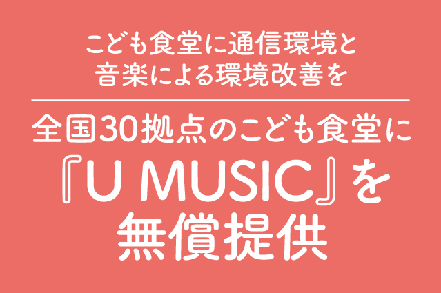 USEN-NEXT GROUPの株式会社USEN(本社:東京都品川区、代表取締役社⾧:田村 公正、以下、USEN)は、認定NPO 法人全国こども食堂支援センター・むすびえ(本社:東京都新宿区、理事⾧:湯浅 誠、以下、むすびえ)の協力を得て、全国30拠点 のこども食堂に『U MUSIC』を無償提供します。