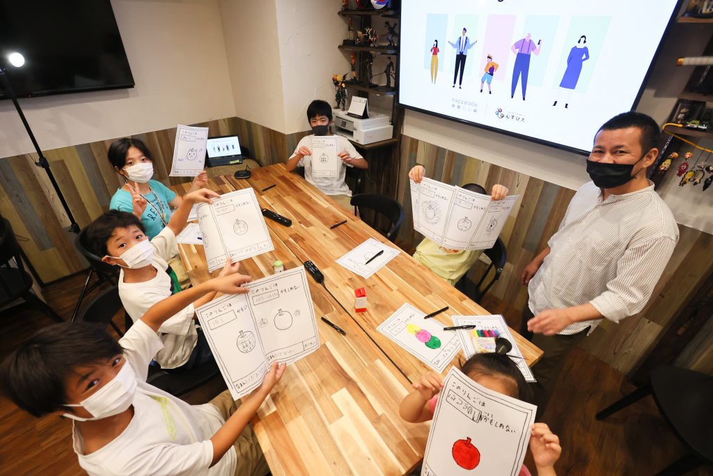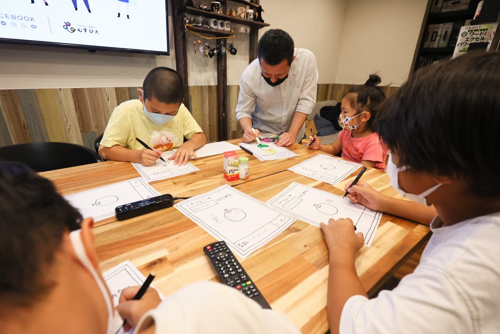 第一弾の活動となった9月22日(水)には、父親が子育てを積極的に行うことを提案する「NPO法人スーパーダディ協会」と、「こども食堂waiwai」(品川区)の協力を得て、こども食堂での「リラベリング発想ワークショップ&デリバリー絵本展」を開催しました。NPO法人スーパーダディ協会会員によって運営されているリサイクル絵本図書館「Ciccia Books」(大阪府)より選出された、幼児だけではなく様々な世代が楽しめる絵本の展示や絵本を使ったワークショップを通して、こども食堂で子どもたちが新しい世界との出会いや気づきを得るきっかけを提供いたしました。