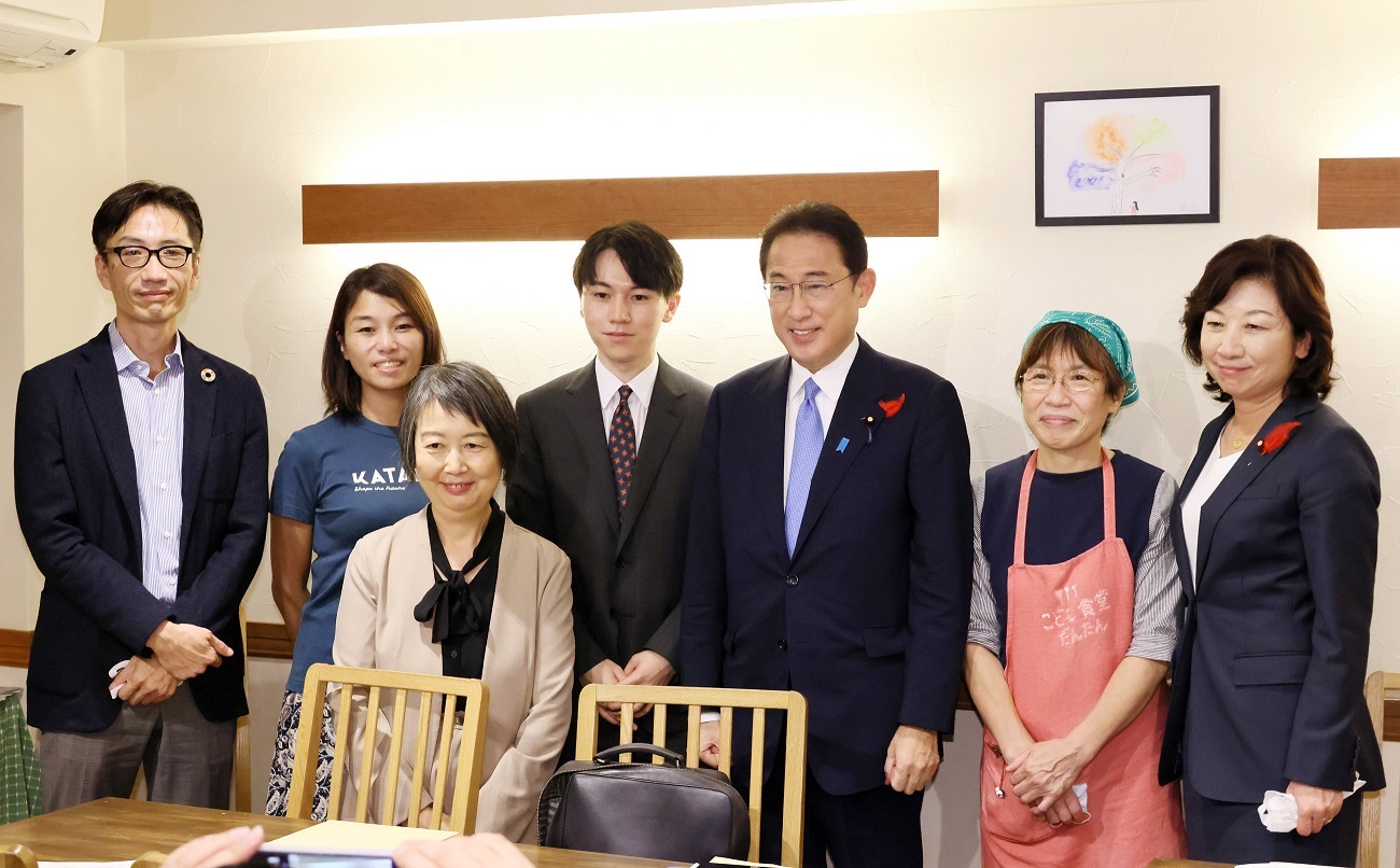 2021年10月12日に岸田総理大臣と野田特命(地方創生、少子化対策、男女共同参画)担当大臣が東京都大田区の「だんだん こども食堂」を視察され、その場で開催された「生活困窮者(非正規、子ども食堂、孤独・孤立)」をテーマにした車座懇談会に理事長の湯浅が参加しました。