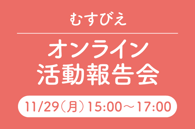 12月の寄付月間に先立ち、むすびえでは、むすびえとつながってくださっております皆様に活動のご報告や感謝をお伝えする機会として、オンライン活動報告会を開催します。