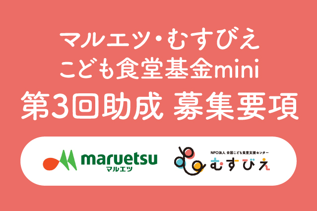 - 事業の実施に際して、対象期間中にチラシやホームページなどで告知・報告をする場合には「マルエツ・むすびえこども食堂基金mini」の助成事業であることを明示してください。「#マルエツ」「#むすびえ」などのハッシュタグをつけて頂けると嬉しいです。
