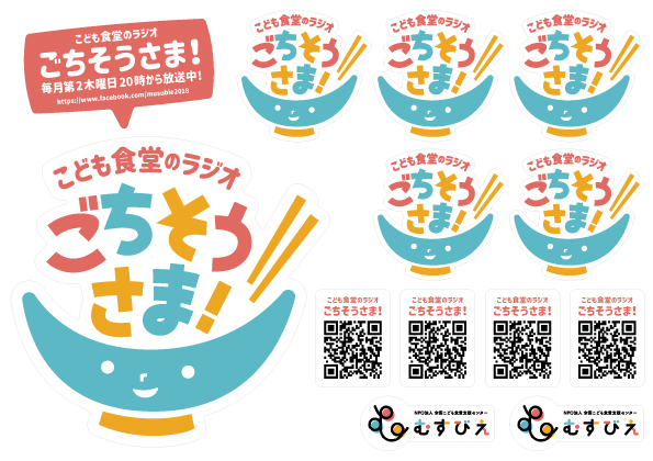 メールいただいた方には、「こども食堂のラジオ・ごちそうさま!」オリジナルステッカーを5枚お送りしています。