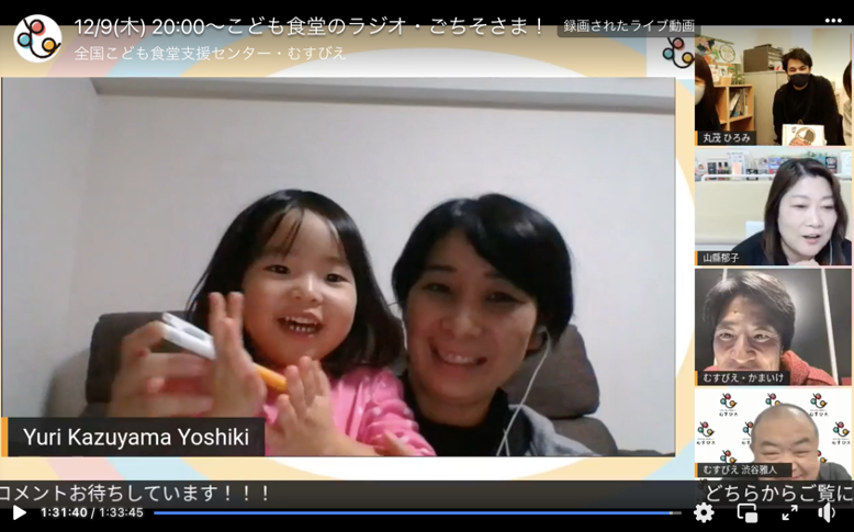 そして、特集の「こども食堂の歌スペシャル」では、こども食堂「まんまる食事会」(群馬県高崎市)の丸茂ひろみさん、竹内英補さん、万里さんご夫妻、親子いこいの広場「もくもく」(長崎県佐世保市)の数山有里さんをお迎えして、3曲のこども食堂の歌を放送しました。2曲はYouTubeにあがっているので、よかったら聞いてみてください!!