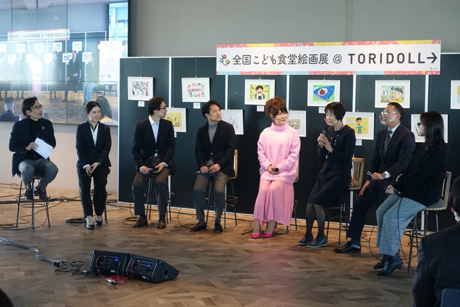 子どもたちが描く、こども食堂での楽しい思い出、あたたかな人と人とのつながりを、より広く発信するため、12月20日(月)に本絵画展の選考委員も務めるタレントのはるな愛さんや本企画の協賛・協力企業、こども食堂運営者の皆様をお招きし、株式会社トリドールホールディングス様と共催で、トークイベントを開催致しました。