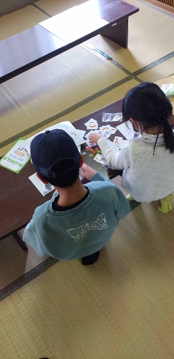 1つ1つの基本の動きを確認し、まずは一人でコマを動かすために必要なカードの組み合わせを学んだ後に、4歳~8歳の4人でゲームを行った。