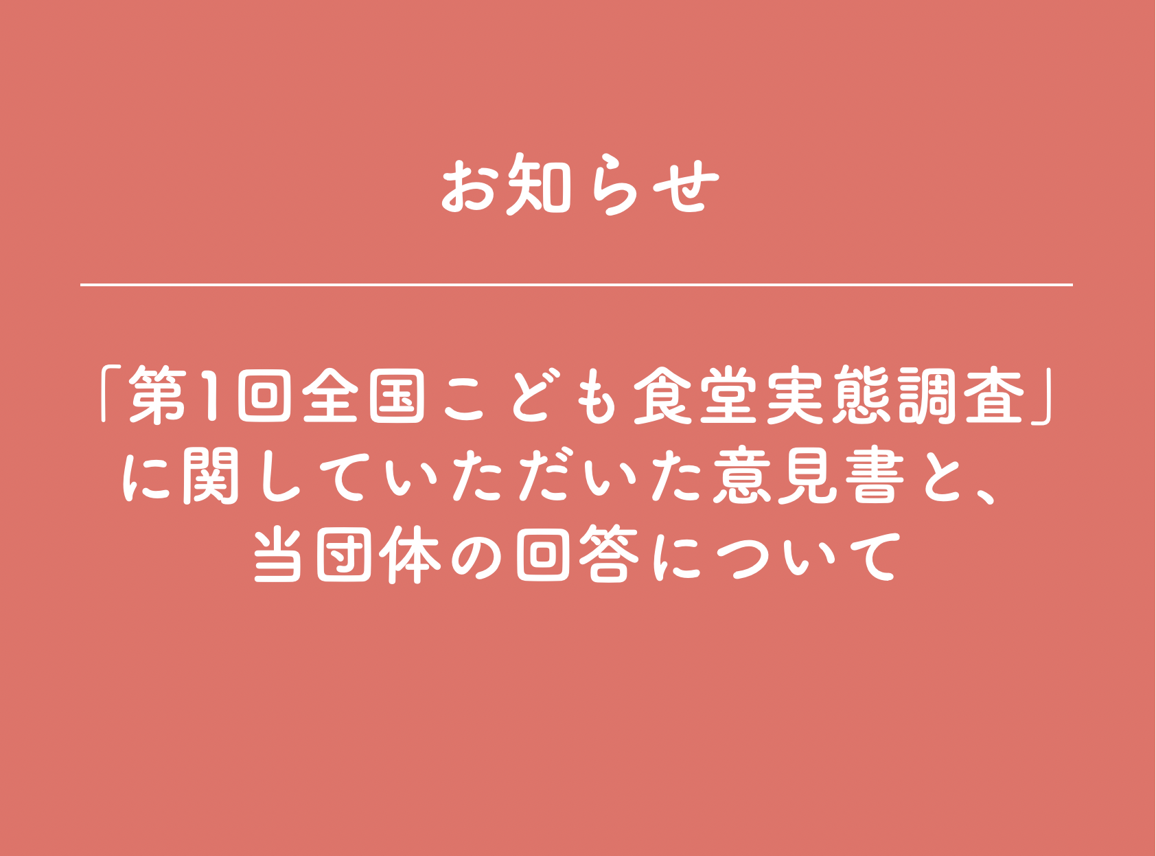 むすびえが実施した「第1回全国こども食堂実態調査」に関して、「まいばら居場所づくりネットワーク」の振角大祐氏らより、添付の「意見書」をいただきました。