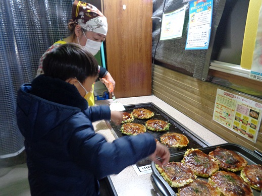 この度は「お好み焼セット」のご提供ありがとうございました。令和3年12月17日(金)の「ゆうゆう食堂」にて提供させていただきました。子ども達の大好きなお好み焼を鉄板でカリッと焼き、ソースをかけて提供すると、「いい匂い!!」や「美味しそう~」という声が聞こえていました。鉄板のそばにやってきた子どもには、焼き方をレクチャーする機会も設けることで、「お家でもやってみよう!!」と意気込み、それを聞いたお母さんが子どもの成長に喜んでいました。