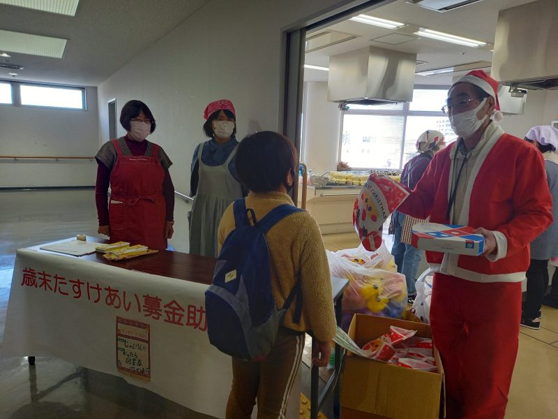 ●今日今年最後のこども食堂を実施しました。クリスマスも近いので、ゼリーを他のおかし等と袋に入れサンタさんがプレゼントしました。メニューもクリスマスを意識したものにしたので、気分が上がり子どもたちも喜んで持ち帰ってくれました。(茨城県:Cookぼーの)