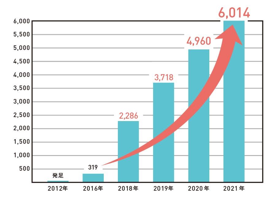 2012年に東京・大田区で初めて「こども食堂」の暖簾が掛かって以来、子どものため、地域のため、と多くの人がその取組みに参加した結果、2021年時点で6000箇所にまで増えました。行政サービスである児童館の数を越え、利用者は年間推計で延べ1,050万人にのぼります。