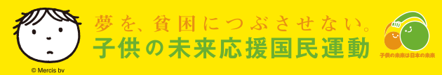 ※「子供の未来応援国民運動」とは、貧困や生まれ育った環境によって、教育の機会が得られずに将来の可能性が閉ざされてしまう子供たちや、衣食住が十分確保されていない子供たちを応援するプロジェクトです。