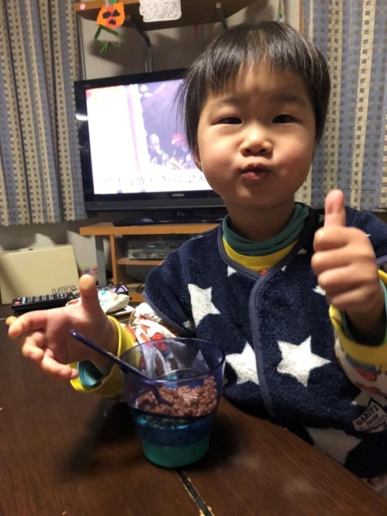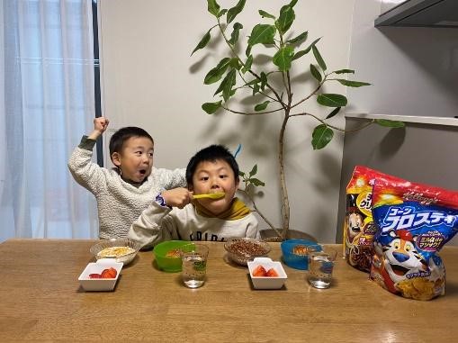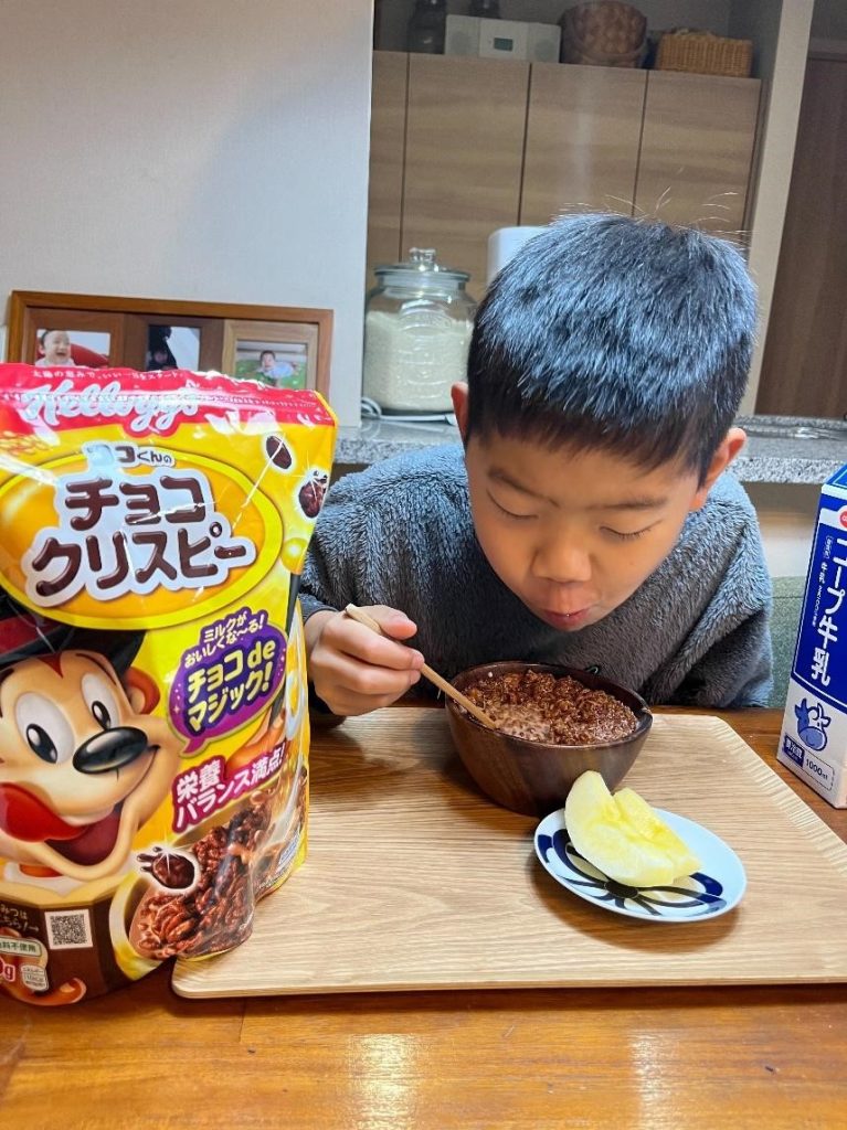 ・子どもは朝食を食べなかったのですが、チョコクリスピーを喜んで食べてくれます。