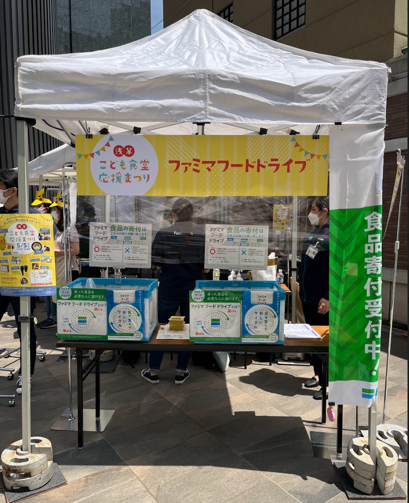 また、、ファミリーマートのフードドライブや台東区内の制服を集めるリサイクルコーナーを設置し、参加者の方々からもたくさんのご寄付を頂く事が出来ました。