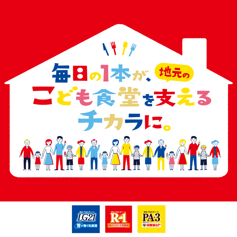 この度、株式会社 明治(代表取締役社長:松田 克也)は、地域コミュニティの活性化をサポートするため、主力商品の「明治プロビオヨーグルト」3ブランド各種の売り上げの一部で「こども食堂」を支援する取り組みを、6月1日より2カ月間、全国約180社の賛同企業と連携し実施いただくことになりました。