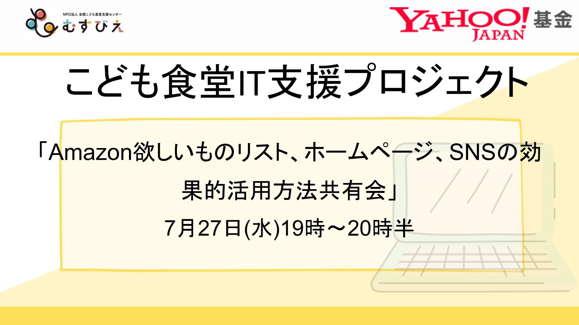 こども食堂IT支援プロジェクト「Amazon欲しいものリスト、ホームページ、SNSの効果的活用方法共有会」開催のお知らせです。