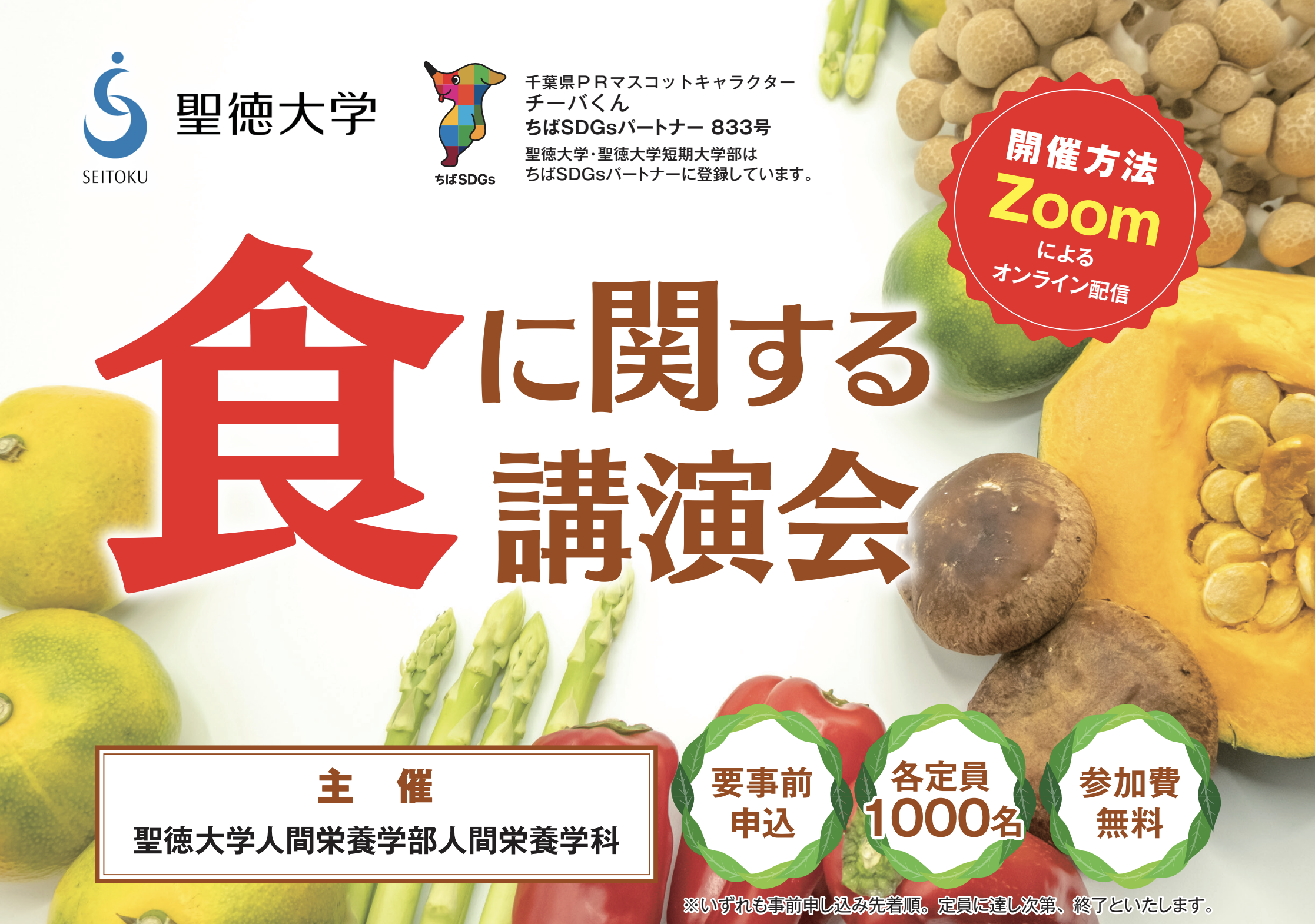 聖徳大学(千葉県松戸市)にて11月19日(土)・20日(日)、「食に関する講演会」が開催されます。