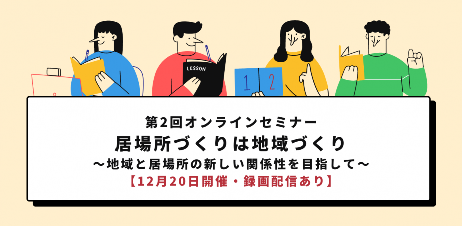 第2回セミナーでも、居場所づくり・地域づくりの運営者や実践者を登壇者に、参加者とともに居場所と地域の関係性について一層考えを深めていきます。さらに気づきや学びを得る機会となることを願って、皆様からのご参加をお待ちしております。