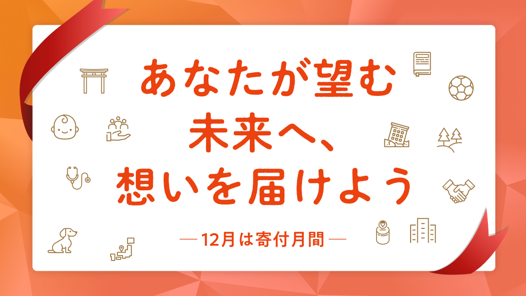 寄付月間(Giving December)は、「欲しい未来へ、寄付を贈ろう。」を合言葉に、企業、NPO、大学、行政等が連携して行う寄付の啓発キャンペーンです。