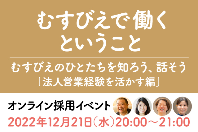 タイトル:むすびえで働くということ~むすびえのひとたちを知ろう、話そう~「法人営業経験を活かす編」