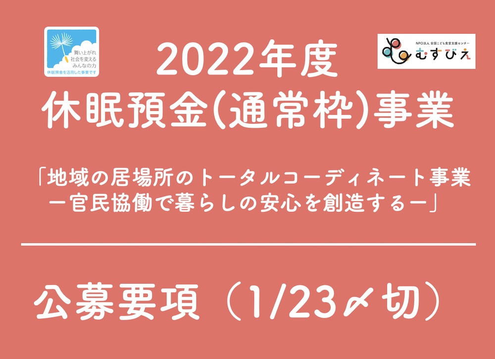 認定NPO法人全国こども食堂支援センター・むすびえは、一般財団法人日本民間公益活動連携機構(略称:JANPIA)が実施する2022年度通常枠の資金分配団体に選定されました。