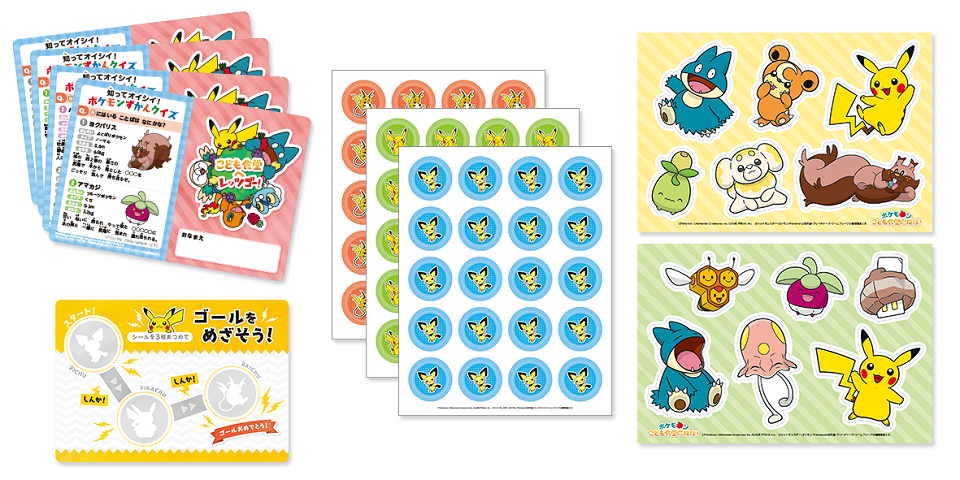 シールラリーは第2弾として、より手軽にラリーを実施できるようにデザインを一新されたそうです。シールラリー参加カードは、ポケモンたちのずかんクイズつき!