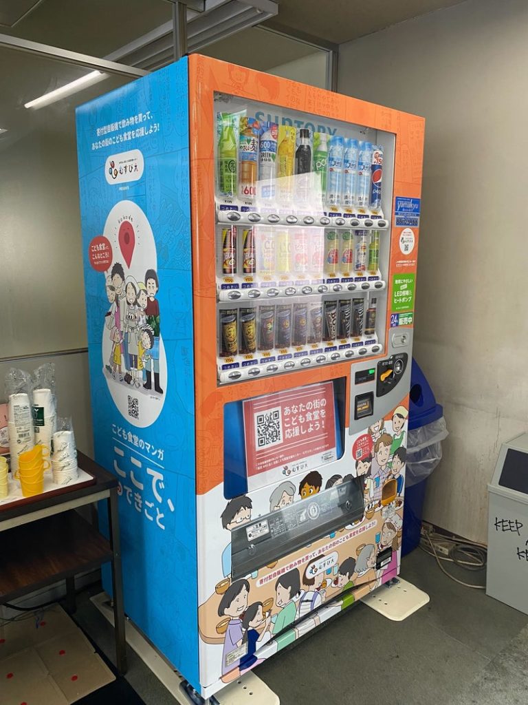 むすびえではご支援くださっている企業さまのご協力のもと、全国各地にて「寄付付き自動販売機」の導入と、その自販機での売上の一部をむすびえにご寄付いただくことを通したこども食堂への支援の仕組みを順次拡大しております。