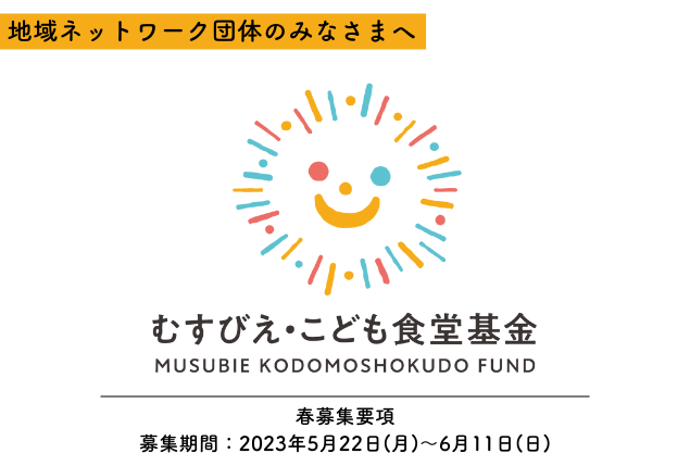 ※別団体「こども食堂ネットワーク」では、申請書の提出やお問い合わせは受け付けておりません。また、むすびえ代表アドレスや電話でのお問い合わせも受け付けておりません。