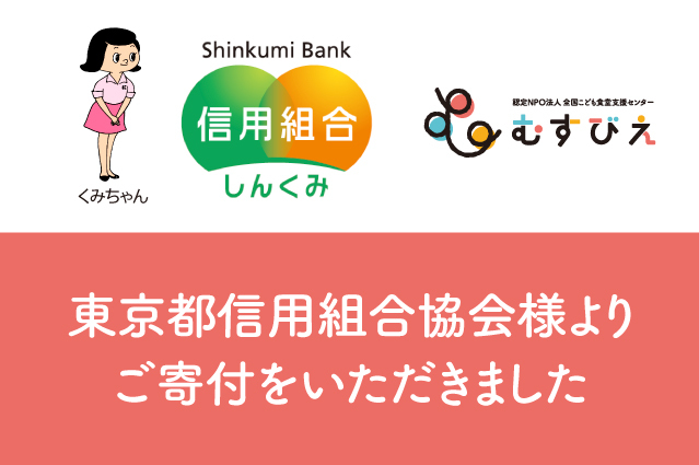 東京都信用組合協会様並びに定期預金企画においてこども食堂への支援に共感をいただいた預金者の皆さまに心より感謝申し上げます。