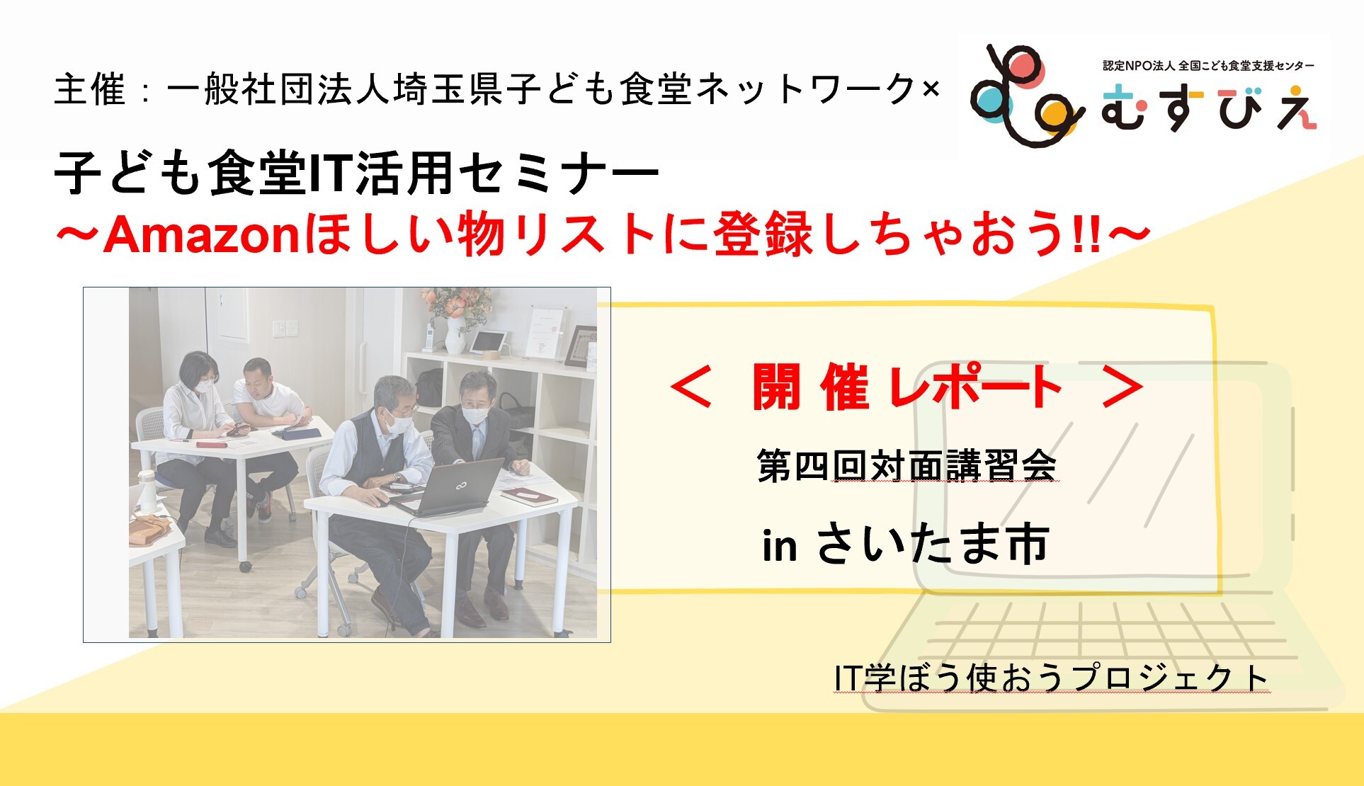 2023年6月4日(日)、埼玉県さいたま市土呂地区にて「 子ども食堂IT活用セミナー~Amazonほしい物リストに登録しちゃおう!!~」第四回(FINAL)が開催されました。