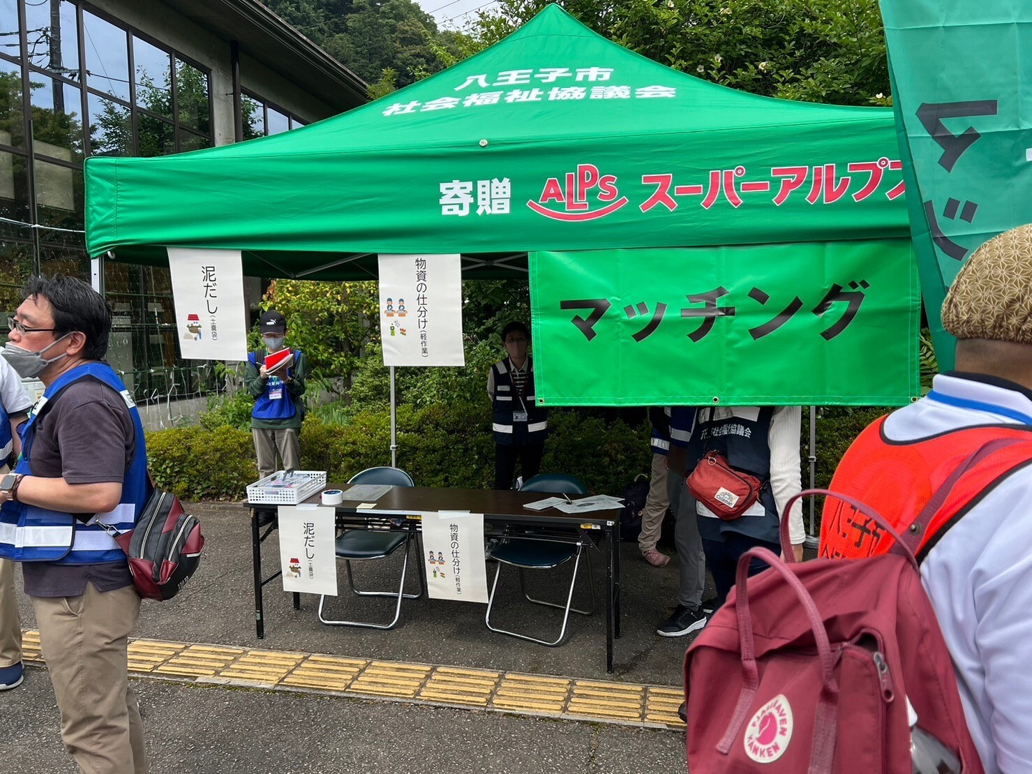 午後からは、八王子市社会福祉協議会主催による災害ボランティア運営訓練が実施されました。この訓練には、浅川地区の町会自治会、民生委員、市役所の職員、消防団、大学生、市民など、総勢110名以上の方が参加されていました。