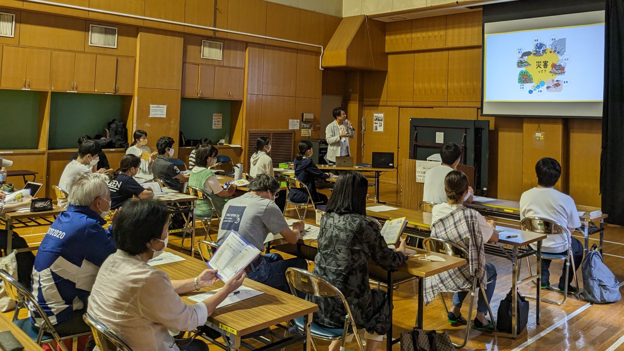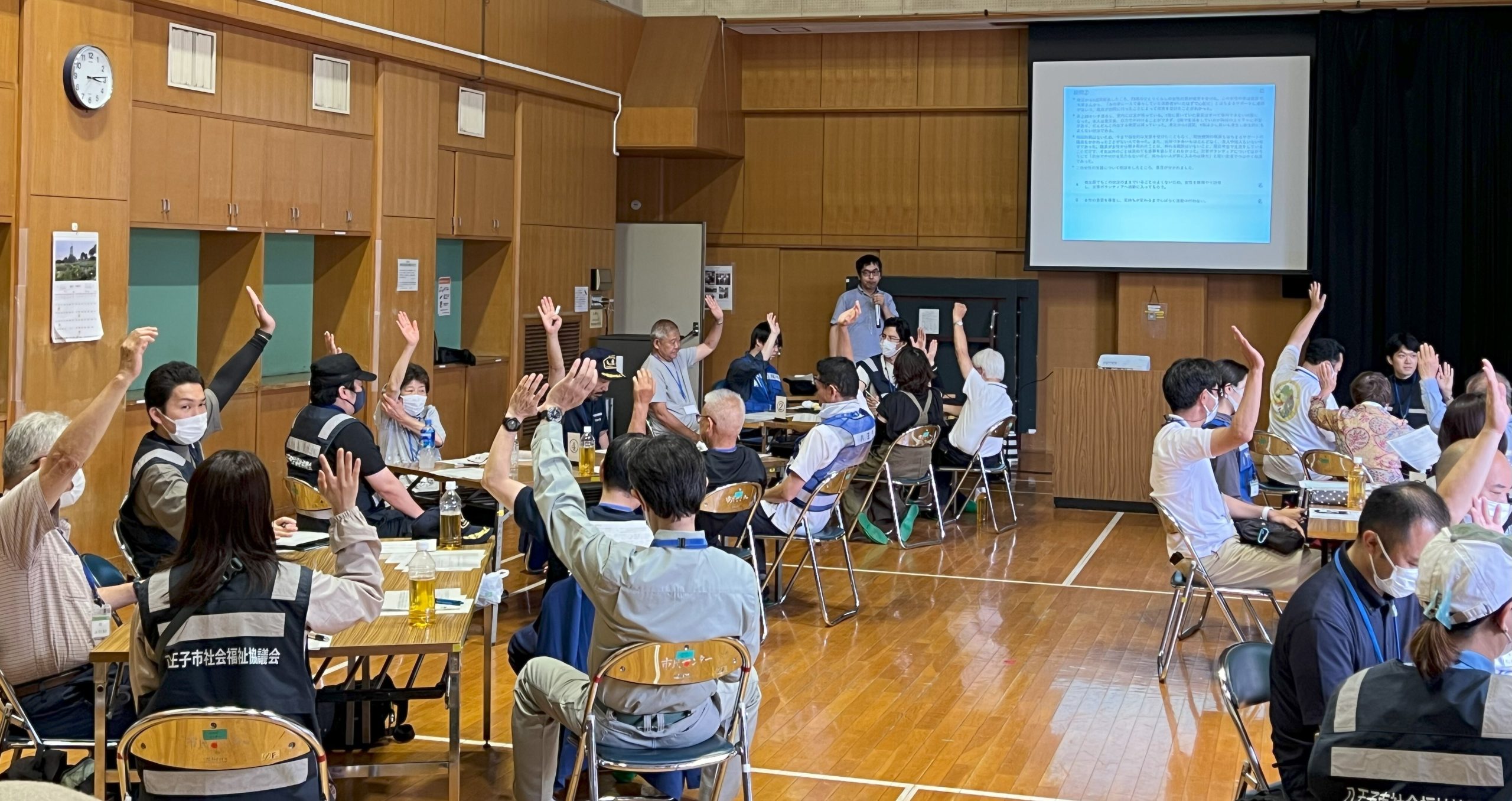 本日の会場である浅川地区は、2019年10月の台風19号で実際に浸水被害を受けた地域であり、当時の復旧活動の中から、地域でのつながりがとても大切であったという教訓を風化させないために、継続的に災害ボランティアセンター運営訓練を実施していきたいという想いと、日ごろのこども食堂の活動が「地域防災」という観点からも、有事にとても役立ったということを多くの方に知ってほしいという想いで、今回の開催に至ったとお話しされていました。